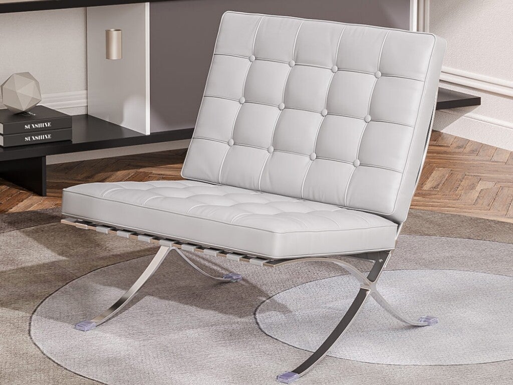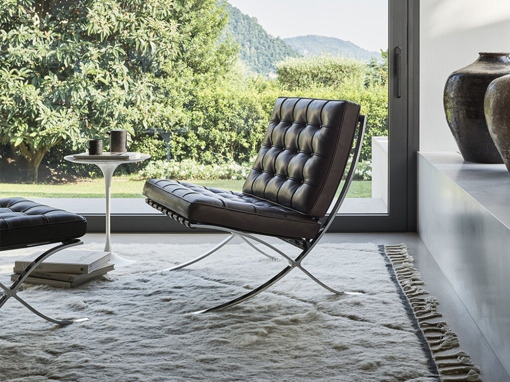 De Barcelona Chair is gemaakt van hoogwaardig chroom voor het frame en premium leer voor de zitting en rugleuning. Deze materialen dragen bij aan de duurzaamheid en luxe uitstraling.